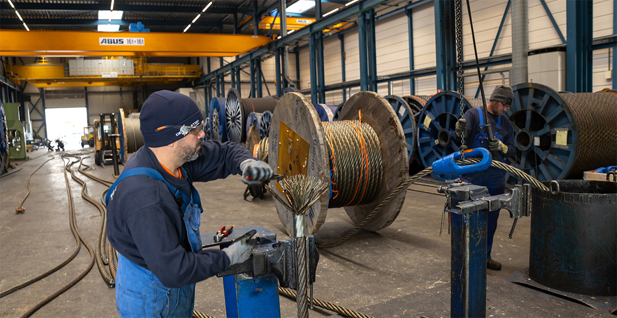 De Ruiter Staalkabel is al decennia een bekende naam in de offshore energy, offshore wind, maritieme sector en de industrie. Sinds 2007 maakt het bedrijf onderdeel uit van Usha Martin, een van ’s werelds grootste staalkabelproducenten. Usha Martin is een internationaal netwerk van fabrieken (onder meer in India en het Verenigd Koninkrijk) en een Global Development Centre in Italië. “Wij hebben hier heel veel kennis in huis, maar ook fabrieken achter ons en engineers die draden ontwikkelen of adviseren wat geschikt is voor welke toepassing”, zegt Head Test & Inspection Neil Hendriks. Dat vertaalt zich in een breed portfolio: van liftdraden en brugkabels tot kabels voor offshore wind, havens, industrie en olie en gas.