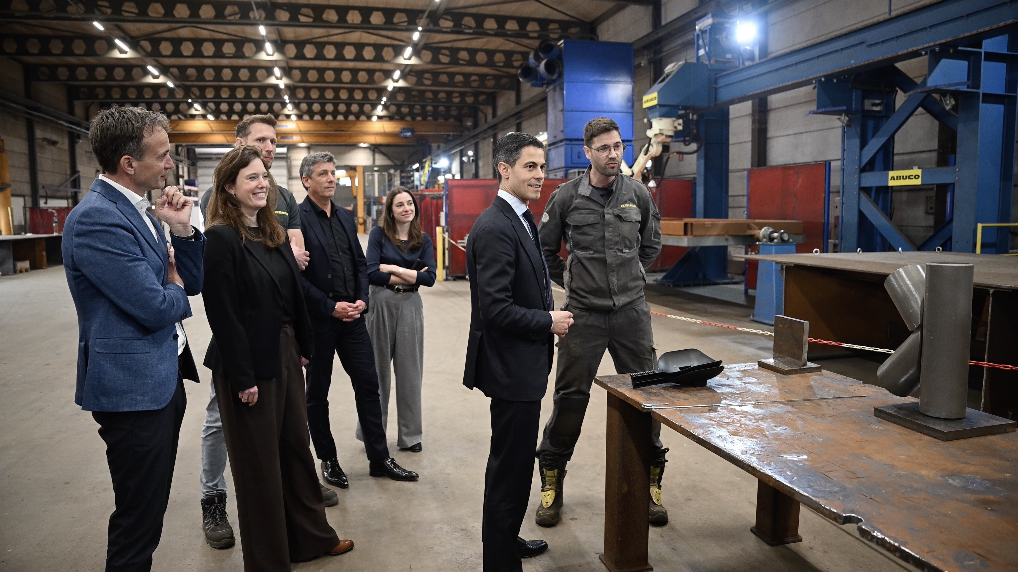 Minister-president Jetten heeft vandaag een werkbezoek gebracht aan de MKB-maakindustrie op uitnodiging van MKB-Nederland en Koninklijke Metaalunie. Jetten bezocht de Metaalunieleden Abuco en HGG in de kop van Noord-Holland. Hierbij overhandigde Metaalunievoorzitter Mark Helder aan minister-president Rob Jetten drie pijlers voor een florerende MKB-maakindustrie: sterke maakketens, verhoging arbeidsproductiviteit en talent. Met de drie pijlers roept Metaalunie het kabinet op tot gerichte investeringen in de MKB-Maakindustrie voor behoud van onze brede welvaart.