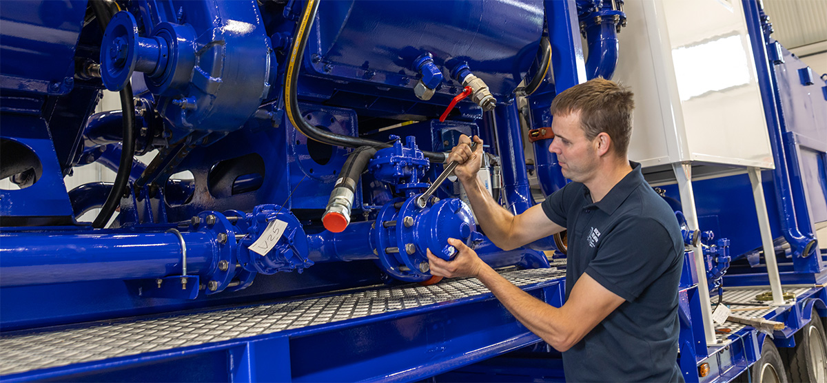 Powerpacks behoren tot de kernproducten. Het zijn compacte krachtcentrales die hydraulische tangen en ander gereedschap voeden voor het koppelen van buizen en het bedienen van afsluiters. Een powerpack bestaat uit hydraulische aandrijving, elektro- of dieselmotor, pomp en besturing. “We zien tegenwoordig steeds vaker elektromotoren.” Daarnaast bouwt Bosch Techniek batchmix tanks waarin cementslurry en chemicaliën tot een stabiel mengsel worden geroerd, dat daarna de put afdicht. De chemical injection skid doseert en verpompt de benodigde additieven. Heel concreet werkt het bedrijf nu aan twee compacte, elektrische machines voor het dichten van gasboorputten op kleine, krappe locaties in Noord-Nederland. “Eigenlijk het oude concept in een nieuw jasje.”