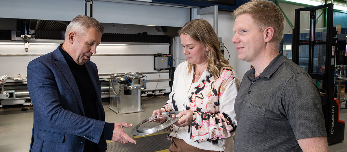 Innovatie in de vorm van robotisering is één van de oplossingen. Bij Thalens PPS zie je die ontwikkeling duidelijk terug in de productiehal. Een Thalens-medewerker werkt met een cobot op de lasafdeling en machines die laserlassen zijn verregaand geautomatiseerd. Lisette: “Zo’n cobot is een mooi voorbeeld van hoe je medewerkers kunt laten meegroeien met robotisering in plaats van een medewerker zo maar vervangen.” Personeel is immers een issue. Opleidingen zijn ver weg en er is weinig specifiek onderwijs in plaatbewerking- of precisietechnieken in Drenthe. En juist die fijntechnische mensen zijn relevant voor Thalens PPS. En dus gaat het ondernemerspaar naar scholen toe en laat het scholieren in de keuken van Thalens PPS kijken om zo voeding voor de toekomst te hebben.